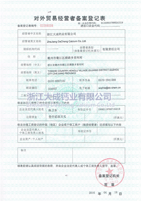浙江大成鈣業(yè)有限公司